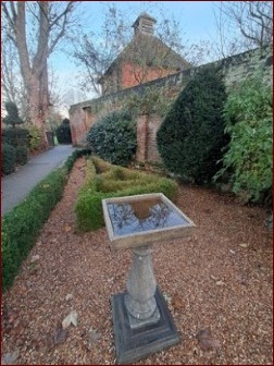 Visitors to the Gardens may have noticed a magnificent new stone bird bath, which is situated in the Topiary Garden behind the Stables building. This was purchased with donations from friends and volunteers in memory of Doris Dowell, a long-serving gardener who took particular care of this area and will be greatly missed.